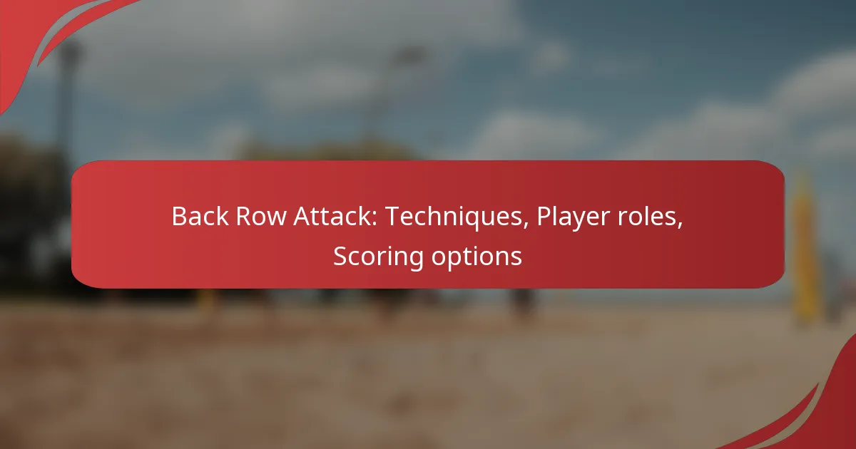 The back row attack is a dynamic offensive strategy where players execute powerful hits from the back line, utilizing techniques such as precise footwork and timing. This approach not only enhances scoring potential but also emphasizes the importance of player roles in transitioning from defense to offense, fostering effective communication with front row teammates. By leveraging various scoring options, teams can strategically exploit defensive weaknesses to secure points and enhance their overall performance.