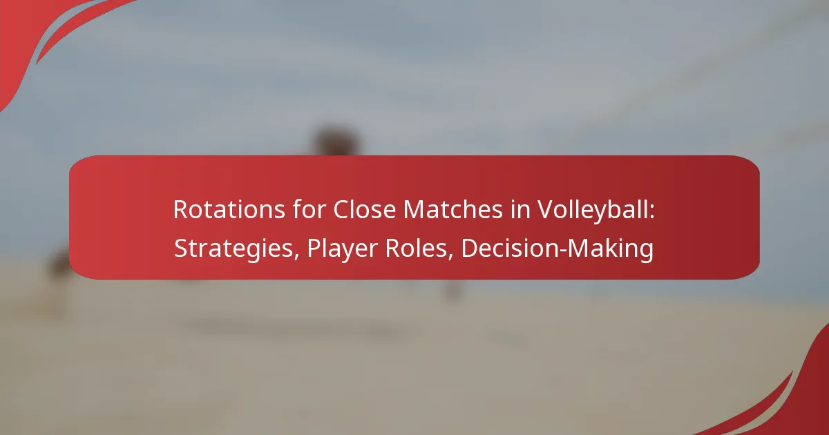 In close volleyball matches, effective rotation strategies are essential for maximizing team strengths and minimizing weaknesses. Each player has a specific role that contributes to both offensive and defensive tactics, making it crucial for teams to understand these dynamics. Strategic decision-making, informed by real-time observations and player performance, allows coaches and players to adapt their rotations and enhance their chances of success.