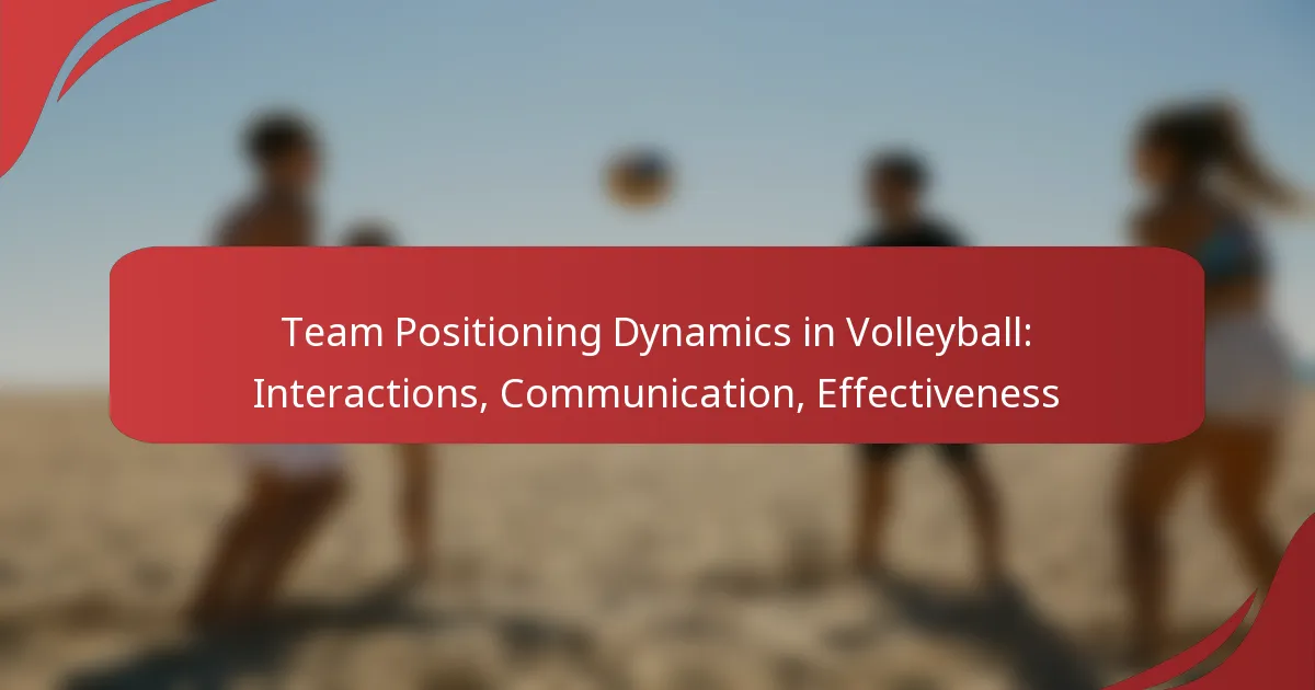 In volleyball, team positioning dynamics are heavily influenced by the interactions and communication among players. Effective verbal and non-verbal communication enhances situational awareness and fosters strong relationships, which are essential for optimal performance on the court. By understanding each player’s strengths and maintaining clear interactions, teams can adapt their strategies and improve overall effectiveness during matches.